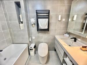 Hosté mají k dispozici několik koupelnových zařízení: vířivku se spa funkcemi, bezbariérový sprchový kout bez schodů, možnost vany nebo sprchy vedle bidetu i přezůvky. Koupelnové doplňky zdarma zahrnují šampon, kondicionér, tělové mýdlo či fén na vlasy. Objekt poskytuje zdarma Wi-Fi po celém areálu i bezplatné soukromé parkování s nabíjecí stanicí pro elektromobily. Další služby zahrnují výtah do přízemního apartmá a bezpečnostní vybavení jako detektory kouře a oxidu uhelnatého či hasicí přístroje.
