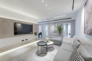 Das klimatisierte Apartment umfasst drei Schlafzimmer sowie zwei Wohnzimmer mit Flachbildfernsehern und Sofas inklusive Schlafsofa. Die voll ausgestattete Küche verfügt über Backofen, Kochfeld, Kühlschrank, Geschirrspüler, Mikrowelle sowie einen Esstisch und ein komplettes Küchenutensilien-Set. Eine Waschmaschine sowie ein Wäschetrockner sind ebenfalls vorhanden. Zwei Badezimmer bieten Spa-Bäder mit Whirlpool oder Duschen sowie Bidets, für den Komfort stehen Hausschuhe und kostenfreie Pflegeprodukte bereit.