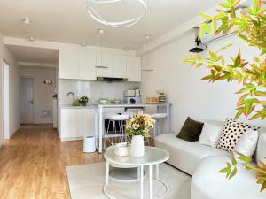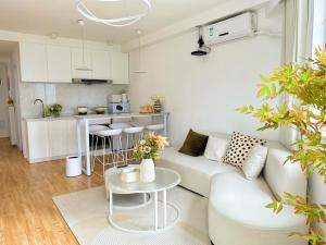 L’appartement dispose d’un coin cuisine entièrement équipé avec plaque de cuisson, four, réfrigérateur, minibar, ustensiles et table à manger pour préparer et savourer vos repas en toute commodité. L’espace salon offre un coin détente ainsi que la climatisation pour garantir votre confort durant votre séjour. Parmi les équipements supplémentaires figurent un lave-linge, une armoire ou penderie, un étendoir à linge, un bureau de travail ainsi qu’un canapé , les sols combinent moquette avec carrelage ou marbre.