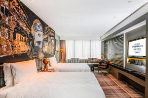El Hotel Indigo Shanghai Jing'An de IHG, un hotel de 4 estrellas ubicado en Shanghái, cuenta con una piscina cubierta y vistas a la ciudad, además de ofrecer 117 habitaciones. El vestíbulo del hotel tiene un diseño único inspirado en una sala de cine, decorado con carteles de las estrellas doradas de Hollywood, creando un ambiente distintivo a solo unos pasos de la estación de metro Hanzhong Road, aproximadamente a 10 minutos caminando.