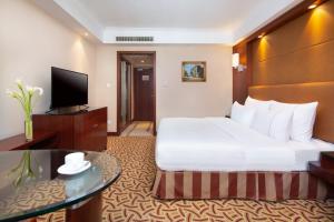 En cuanto a restauración, el hotel ofrece varios restaurantes: buffet en Jianguo Kuiyuan Dinner Buffet, cocina cantonesa Chao en Chu Ting Ge, además del café Coffee Story para opciones más ligeras. El servicio a la habitación añade comodidad adicional. Los servicios al huésped incluyen Wi-Fi gratuito en todas las áreas, aparcamiento disponible onsite, servicio de recepción/concierge, consigna para equipaje, tintorería y lavandería, detectores contra humo por todo el edificio, ascensores que comunican todas las plantas incluyendo las habitaciones, check-in/check-out exprés operativo las 24 horas.