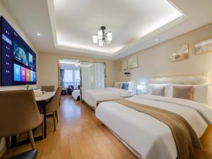 Das 3-Sterne Shanghai Jubelle Boutique Apartment - U-Bahnlinien 8-10-18 befindet sich in Shanghai, nur 3 km vom Shanghai Jewish Refugees Museum entfernt, und bietet kostenfreien Kühlschrank, Waschmaschine sowie Kücheneinrichtungen. Das Apartmentkomplex umfasst 28 Zimmer mit Stadtblick und ermöglicht direkten Zugang zum Bund.
