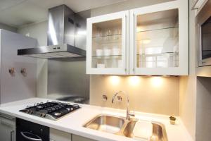 Die Zimmer verfügen über voll ausgestattete Küchen mit Herdplatten, Mikrowelle, Kühlschrank, Küchenutensilien, Wasserkocher und Esstisch sowie Wäschetrockner für Bekleidung. Jedes Apartment besitzt eine Sitzgelegenheit mit Sofas oder einem Arbeitstisch in schallisolierter Umgebung für Komfort und Privatsphäre. Weitere Ausstattung umfasst Kleiderschränke oder Garderobenständer, Bügeleisen mit Bügelbrett sowie Safe, Waschmaschinen mit Wäscheständern oder Trockner sind ebenfalls vorhanden. Die Betten sind mit Bettwäsche bezogen, Handtücher liegen bereit.