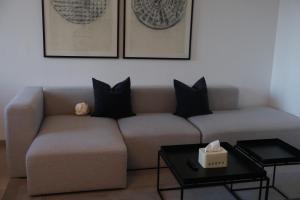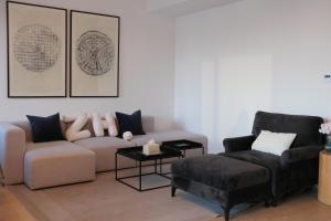 Accommodation features three bedrooms furnished with five beds in total and two bathrooms equipped with both bathtubs and spa baths including a hot tub for ultimate relaxation. The air-conditioned unit offers a fully equipped kitchen complete with an oven, microwave, refrigerator, kitchenware, dining table as well as electric kettle and tumble dryer for clothes convenience. Additional in-room amenities include a flat-screen TV, washing machine, work desk, sofa seating area, hardwood flooring throughout plus ironing facilities such as an iron and ironing board along with towels and bed linen provided.